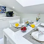 Rummen är försedda med mikrovågsugn, kokvrå och vitrinskåpet. Det finns ett privat med hårtork, bidé och badrockar.